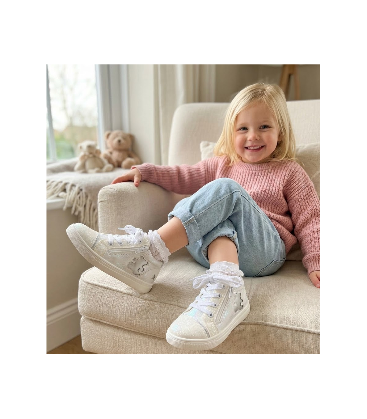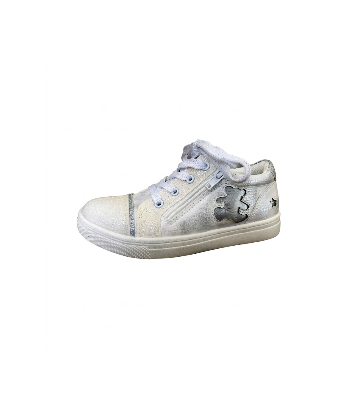 Même la semelle extérieure est parsemée de fines paillettes ! Ces tennis fille détonnent par leur tige aux mille reflets : le dessus associe une matière en toile irisée à des empiècements brillants sur le contrefort, les oillets et le bout de la chaussure. Sans oublier les lacets rehaussés d'un fil métallisé. Et, sur le côté, l'incontournable ourson Lulu Castagnette en paillettes assorties. Des baskets que les filles vont adorer ! A noter, ces tennis sont équipées d'une fermeture zippée sur le côté facile à manipuler pour les plus jeunes.