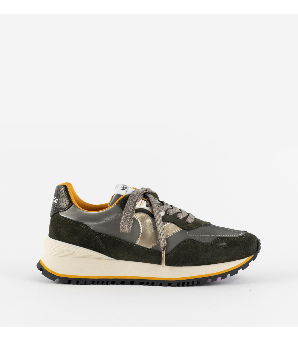 Sneakers pour femme confectionnées en nylon avec pièces en croûte de cuir et détails métallisés et en animal print. Fermeture par lacets ton sur ton. Intérieur en éponge.